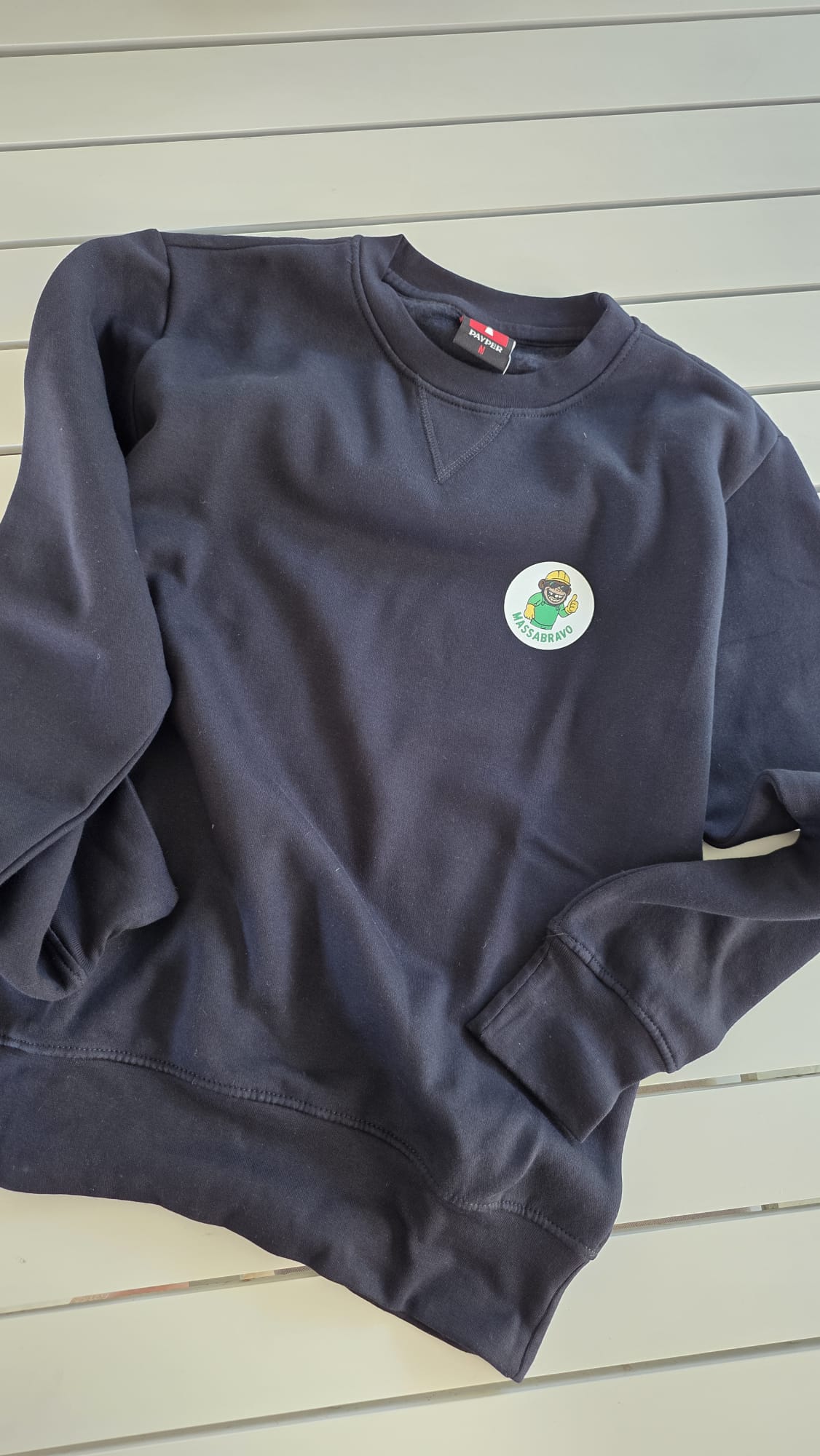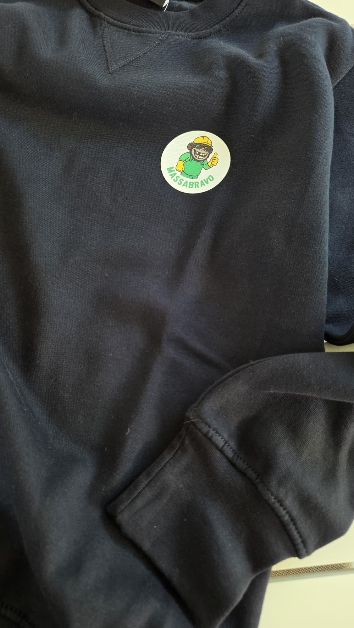 Felpa da uomo, girocollo, cucitura estetica a V al collo, manica a giro, polsini e vita in costina elasticizzata, cuciture rinforzate.
